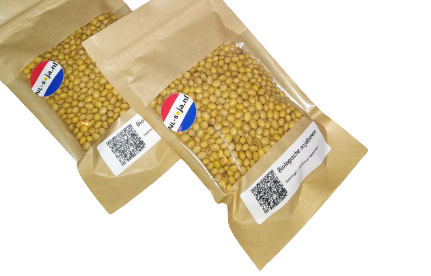 Wij telen sojabonen uitsluitend in Nederland. Dat betekent dat uw sojabonen 'uit uw achtertuin komen'.